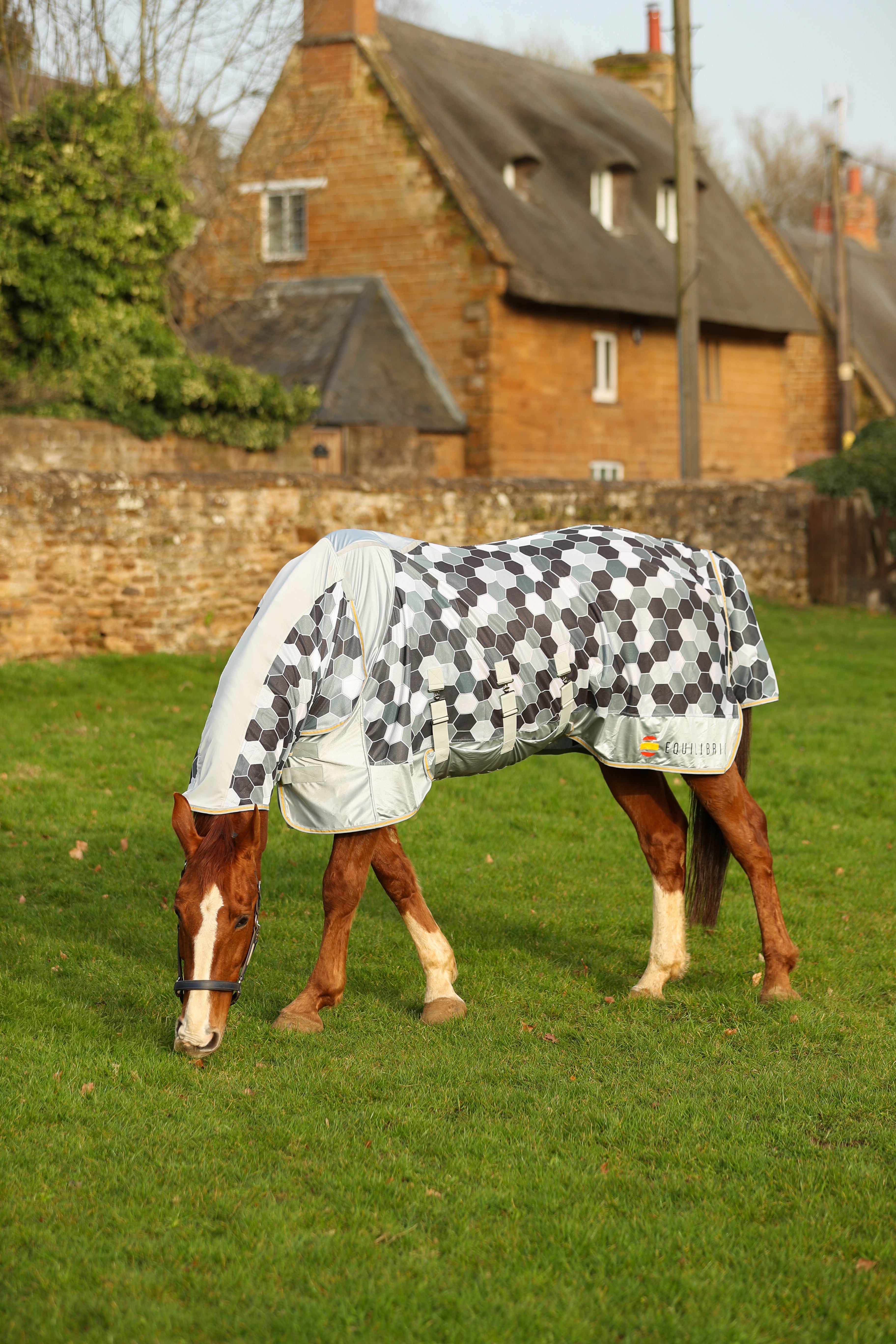 Le maillage de la couverture est conçu pour être suffisamment fermé pour limiter les insectes piqueurs, mais suffisamment ouvert pour garder le cheval au frais lorsque les températures sont plus chaudes. Enfin, la matière protège des rayons nocifs du soleil, offrant une protection de 77 % contre les UVA et de 90 % contre les UVB.